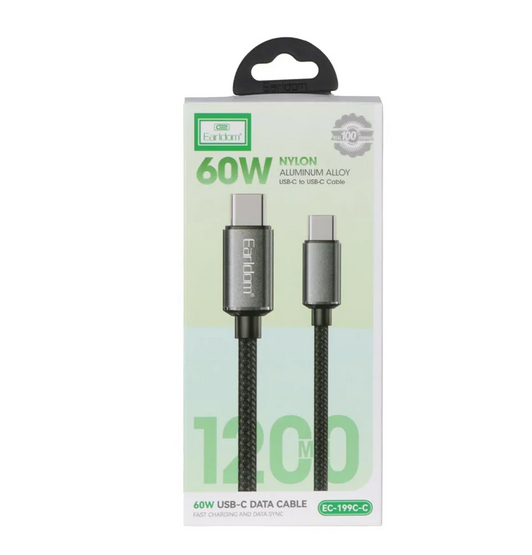 کابل شارژر دوسر تایپ سی TYPE C ارلدام Earldom مدل EC 199C-C متراژ 1.2 متر